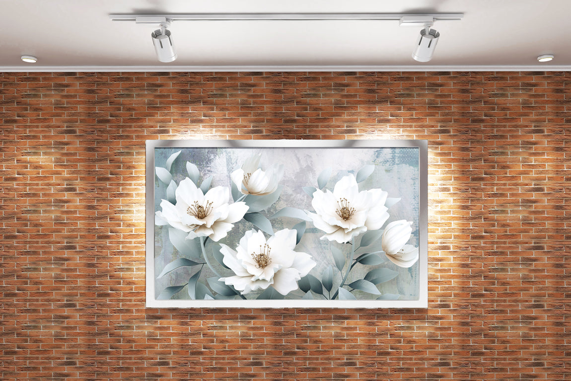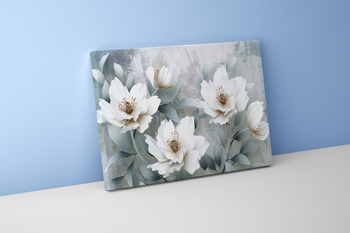 Bu kanvas tablo, zarif beyaz çiçeklerin detaylı baskısını taşır. Gri tonlardaki dokulu arka plan, sanat eserine derinlik ve sofistike bir hava katar. Yüksek kaliteli baskı tekniği sayesinde, canlı renkler ve keskin detaylar uzun süre korunur, mekanlarınıza şıklık ve estetik bir dokunuş sağlar. Kalıcı ve etkileyici dekorasyon için ideal bir seçimdir.