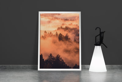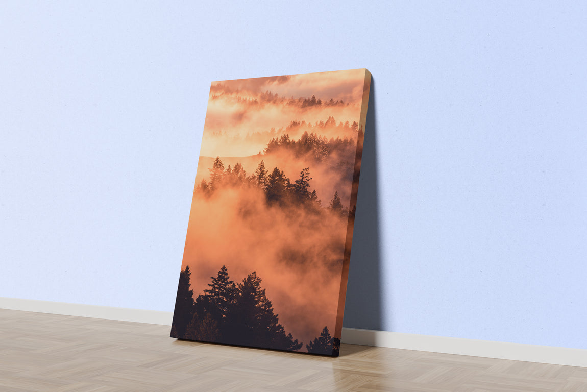 Sisle kaplı dağların ve katmanlı ağaçların altın saat güneş doğuşundaki büyüleyici manzarası, yüksek kaliteli baskısıyla yaşam alanlarınıza derinlik ve huzur katıyor. Canlı renkleri ve soyut dokunuşları sayesinde her ortamda estetik bir atmosfer yaratır. Kalıcı ve net detaylar uzun süre etkisini koruyarak dekorasyonunuza zarif bir dokunuş sunar.