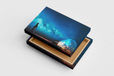 Yüksek kaliteli baskı ile hazırlanan bu kanvas tablo, yıldızlarla dolu bir ampulü çeken küçük bir çocuğun etkileyici sahnesini duvarlarınıza taşıyor. Canlı renkleri ve ayrıntılı baskı teknikleri sayesinde mekanınıza sıcaklık ve derinlik kazandırır. Dayanıklı malzemesiyle uzun yıllar boyunca şıklığını korur, yaşam alanlarınızı özgünlükle tamamlar.