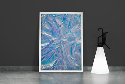 Işıltılı mavi ve mor tonlardaki soyut holografik detaylarla zenginleştirilen bir baskı ile yaşam alanlarınıza modern ve çekici bir dokunuş katın. Parlak renk yansımaları sayesinde atmosferi canlandırır ve her mekana özgünlük getirir. Kaliteli malzemelerle hazırlanmış bu baskı, uzun ömürlü kullanım sağlar ve dekorasyonda fark yaratır.