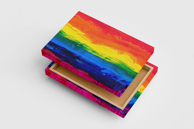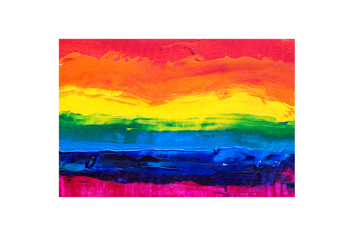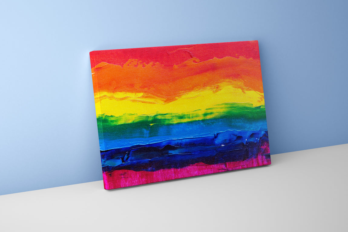 a close-up of a thickly painted rainbow flag on a textured canvas background, abstract, art, kanvas tablo