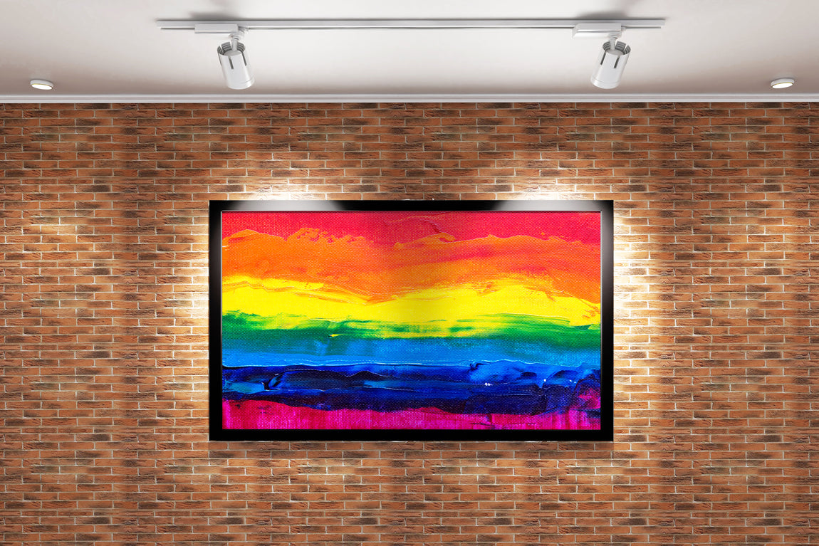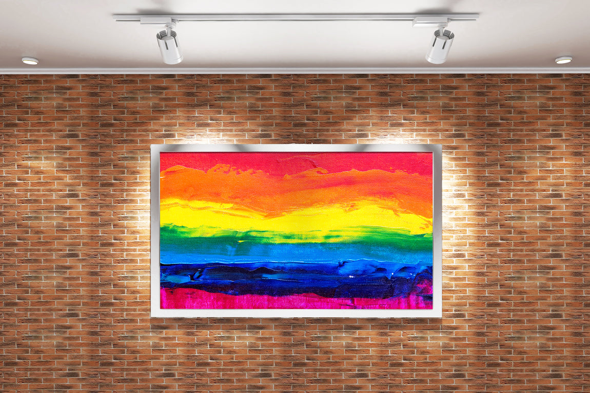 Dokulu yüzey üzerinde kalın detaylarla işlenmiş gökkuşağı renklerinin baskısı, mekânınıza canlılık ve derinlik katar. Canlı renkler ve zengin dokular, her ortamda güçlü bir görsel etki yaratır. Dayanıklı malzemeden üretilen baskı, uzun süre boyunca renklerini koruyarak dekorasyonunuza estetik bir dokunuş sağlar.