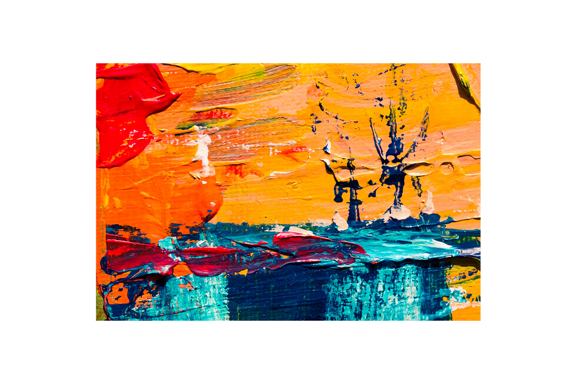 a close-up of a vibrant abstract painting with thick orange and blue brushstrokes, abstract, art, kanvas tablo