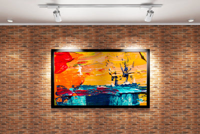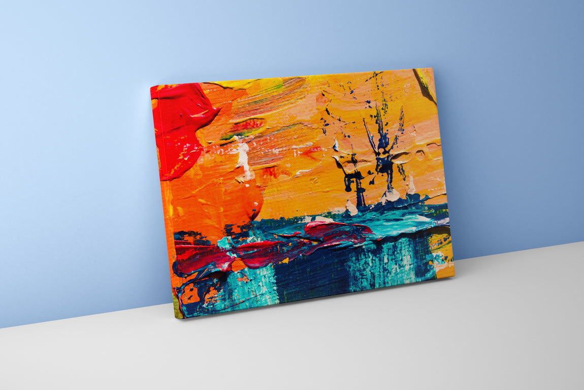 Canlı turuncu ve mavi fırça darbeleriyle öne çıkan bu baskı, soyut sanatın dinamizmini odanıza taşıyor. Kaliteli kanvas üzerine yapılmış detaylı baskısı sayesinde hem renklerin parlaklığını hem de dokusal zenginliği hissedebilirsiniz. Mekanınıza enerjik ve modern bir dokunuş katmak için ideal bir tercih.