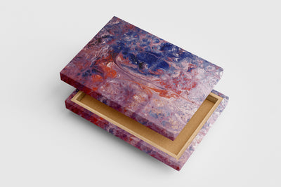 a detailed and complex fluid art painting with pink, blue, and sparkling red colors, abstract, art, kanvas tablo