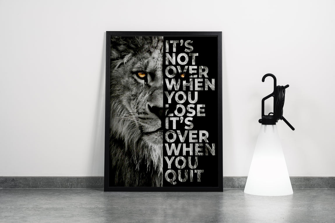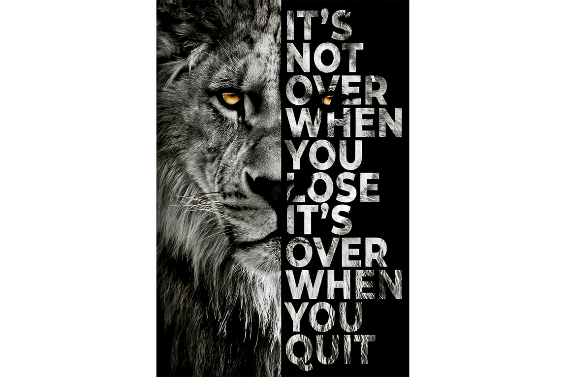 Aslan yüzünün detaylarıyla ve motive edici sözle buluşan bu baskı, yaşamınıza güç ve ilham katacak. Yüksek kaliteli kanvas üzerine uygulanmış renkler canlılığını uzun süre korur, mekanınıza etkileyici bir atmosfer sağlar. Dayanıklı malzeme ve özenli işlem, ürünün uzun ömürlü ve şık kalmasını sağlar. Enerjisini ve kararlılığını her an hissetmek isteyenler için ideal bir tercih.