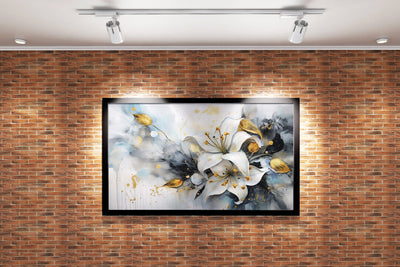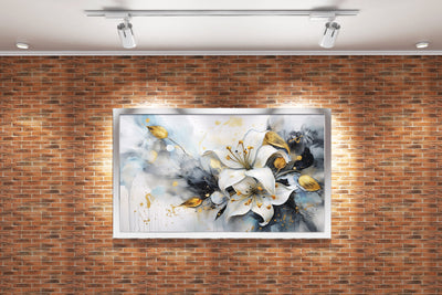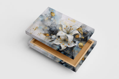 Beyaz zambakların zarif duruşu ve altın yaprakların ışıltısıyla yaşam alanlarınıza sofistike bir dokunuş katın. Altın püskürtme detayları, tabloya eşsiz bir derinlik ve parlaklık sağlar. Kaliteli kanvas malzemesi sayesinde uzun ömürlü ve etkileyici bir dekorasyon seçeneği sunar. Ev veya ofis ortamlarınızı estetik ve şıklıkla tamamlamak isteyenler için ideal bir tercih.