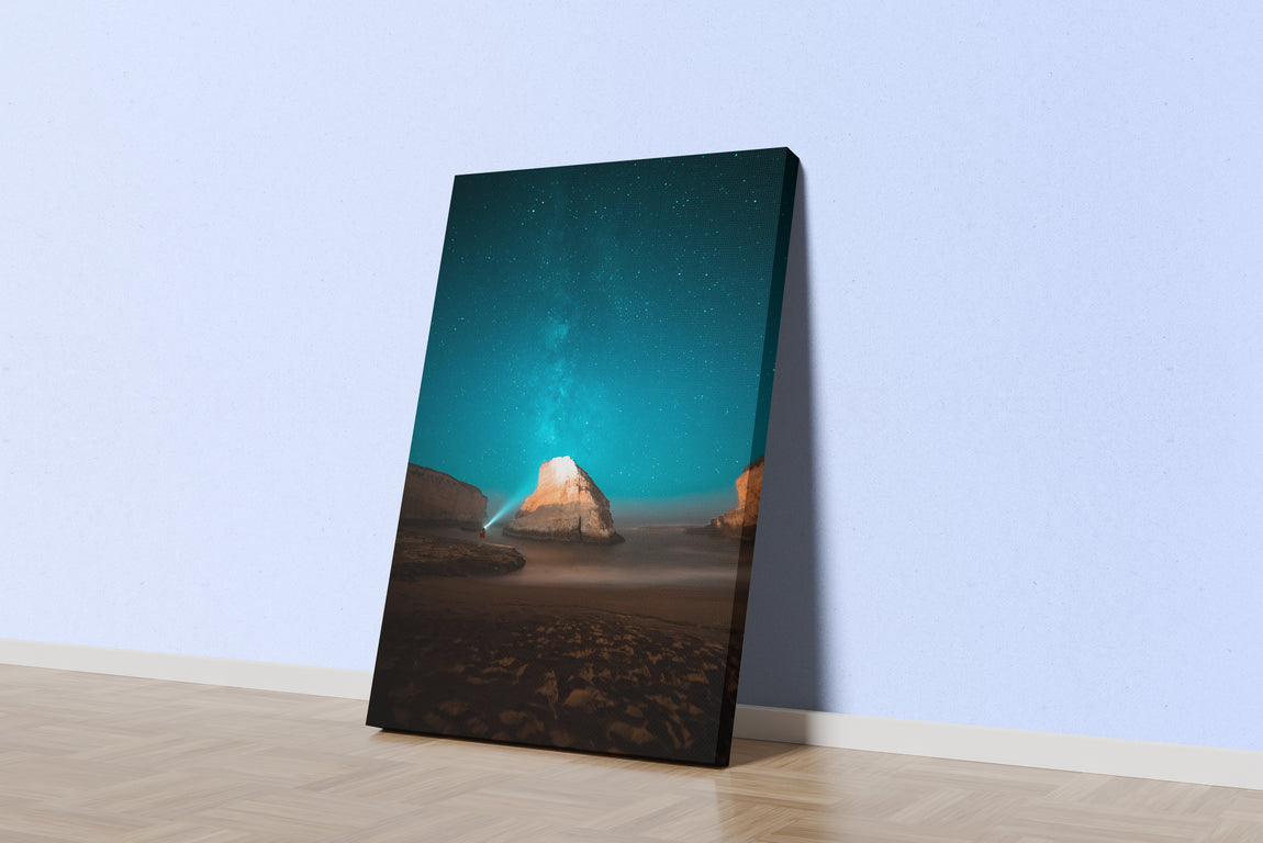 Gece gökyüzünün büyüleyici manzarası altında, sahilde duran bir adamın deniz kayasını aydınlattığı bu baskı, huzur ve gizemi evinize taşıyor. Milky Way’in eşsiz yıldızlarıyla birleşen detaylar, her bakışta derinlik ve sakinlik hissi veriyor. Yüksek kaliteli baskı teknikleri sayesinde renkler canlı ve net kalırken, dayanıklı kanvas dokusu uzun ömürlü kullanımı garanti ediyor. Mekanınıza sofistike ve etkileyici bir atmosfer kazandırmak için ideal bir tercih.