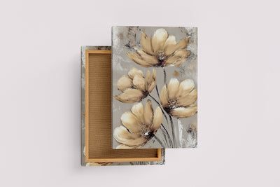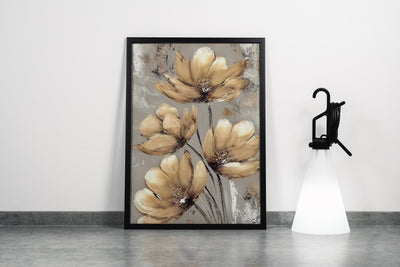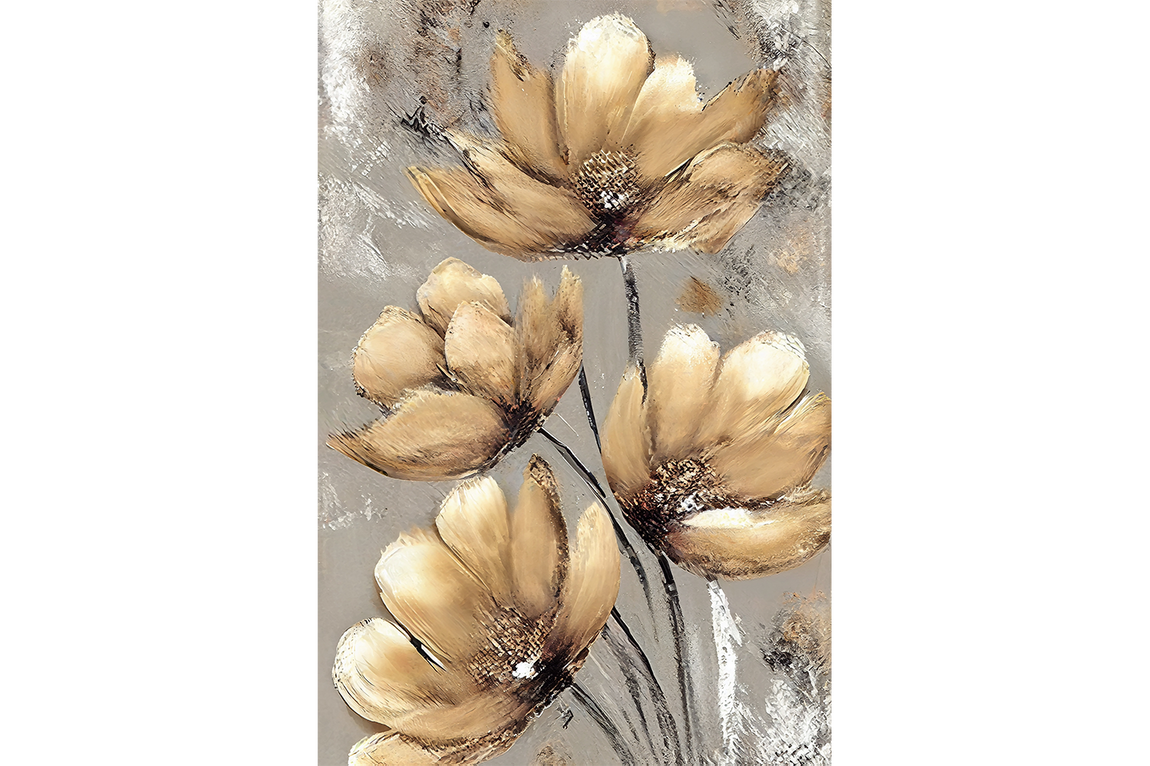 a palette knife painting of elegant golden-brown flowers with a heavy texture, art, kanvas tablo