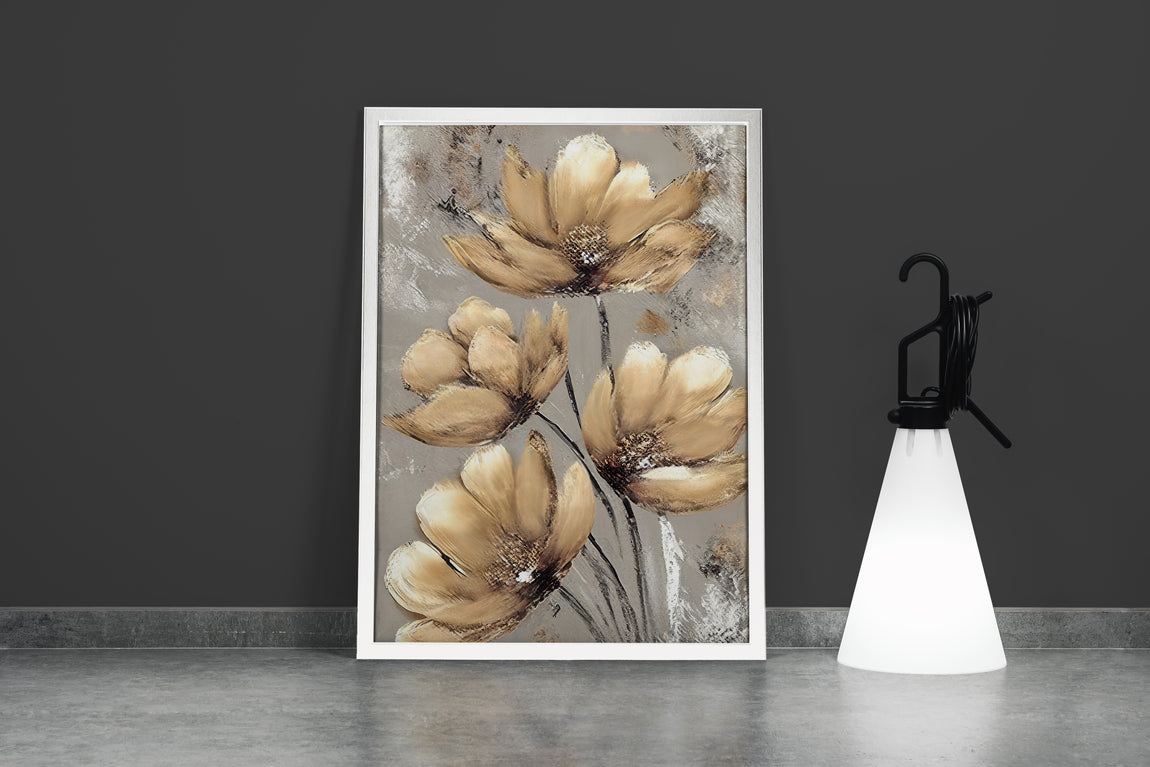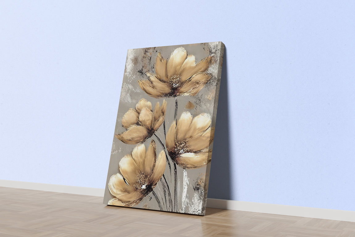Doku zenginliği ve canlı renkler, mekanınıza sıcak ve şık bir dokunuş katıyor. Kaliteli baskı tekniği sayesinde, altın kahverengisi tonlarındaki çiçekler detaylı ve etkileyici bir şekilde yansıtılıyor. Dekorasyonda estetik ve doğallığı bir arada sunan bu eser, yaşam alanlarınızı sofistike ve davetkar kılar.