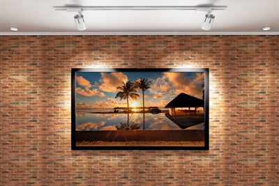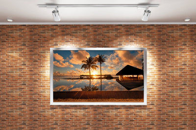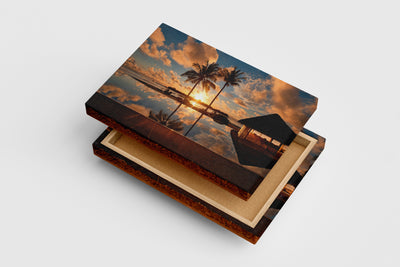 Göz alıcı altın renklerdeki gün batımı, sakin bir sonsuzluk havuzunda kusursuzca yansıtılıyor. İki zarif palmiyenin huzur veren siluetiyle birleşen bu baskı, mekanınıza dinginlik ve estetik katacak. Yüksek kaliteli baskı tekniği, canlı renklerin ve detayların uzun süre kalıcı olmasını sağlar. Dekorasyonunuzda fark yaratan şıklığı kolayca yakalayabilirsiniz.