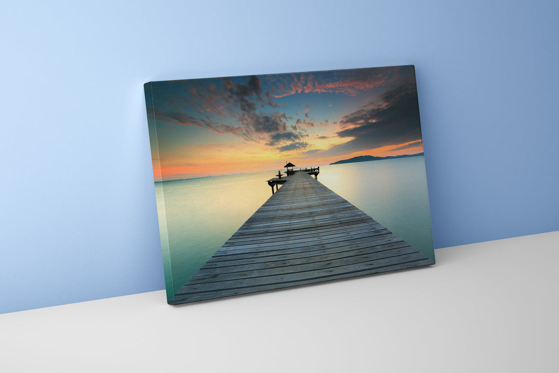 Uzun pozlama tekniğiyle yakalanan bu deniz manzarası, gün batımının sakin ve büyüleyici atmosferini yansıtıyor. Ahşap iskele detayları ve cam gibi durgun su, mekâna huzur veren bir dokunuş katıyor. Yüksek kaliteli baskı sayesinde renkler ve detaylar canlı kalırken, duvarınıza estetik bir şıklık kazandırır. Ev veya ofis ortamlarınıza dinginlik ve zarafet eklemek için ideal bir seçim.