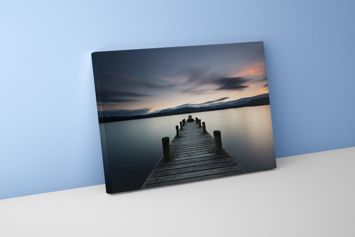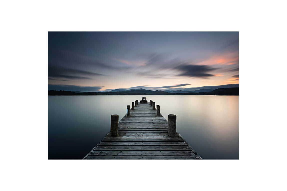 Yansıyan sakin su yüzeyinde uzanan ahşap iskele detayları, uzun pozlama tekniğiyle yakalanan dramatik gökyüzüyle birleşiyor. Kaliteli baskı sayesinde her ayrıntı net ve canlı, yaşam alanlarınıza huzur ve derinlik katıyor. Estetik dokunuşlarla ortamınıza zarif bir atmosfer sunar.