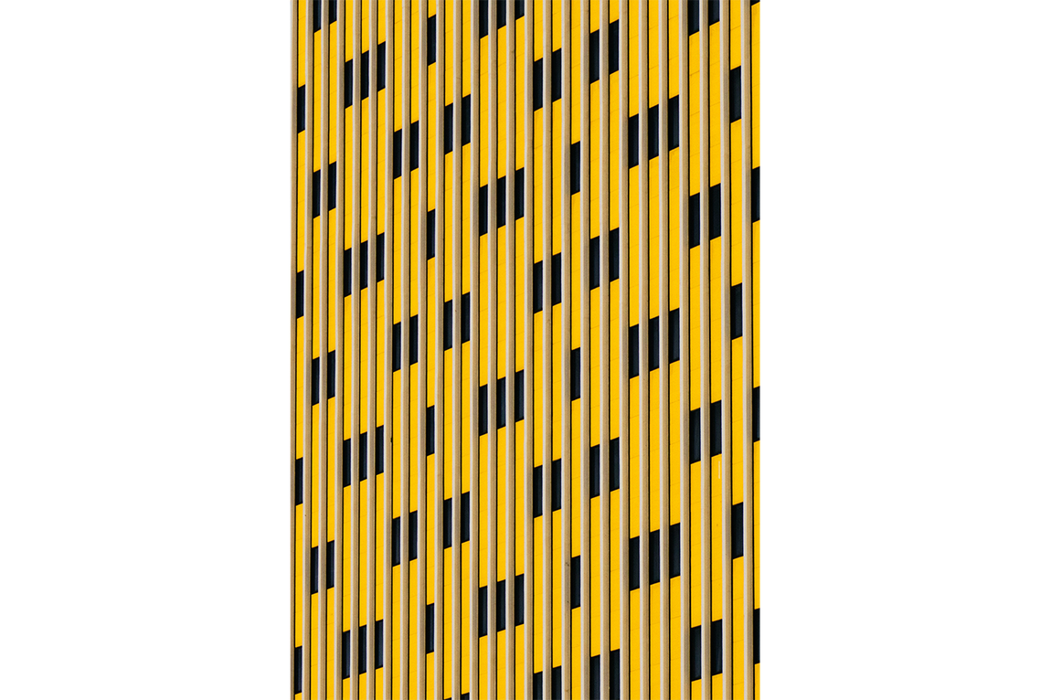 a striking architectural pattern of yellow and black vertical lines creating a rhythmic facade, abstract, art, kanvas tablo