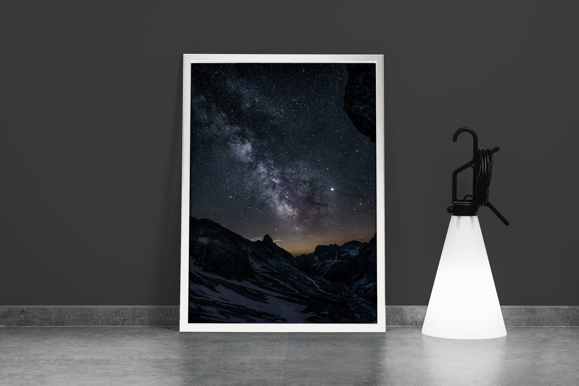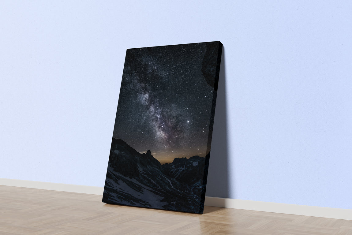 Gökyüzünün derinliklerindeki Samanyolu galaksisinin büyüleyici detayları, karla kaplı dağların karanlık siluetiyle buluşuyor. Yüksek kaliteli baskı sayesinde her yıldız ve dağ formasyonu net ve canlı renklerle yaşam buluyor. Bu baskı, evinize veya ofisinize eşsiz bir atmosfer katarken doğanın ve evrenin ihtişamını her gün hissetmenizi sağlar. Kaliteli malzemesi uzun ömürlü kullanım sunar ve mekanlarınıza sofistike bir dokunuş getirir.