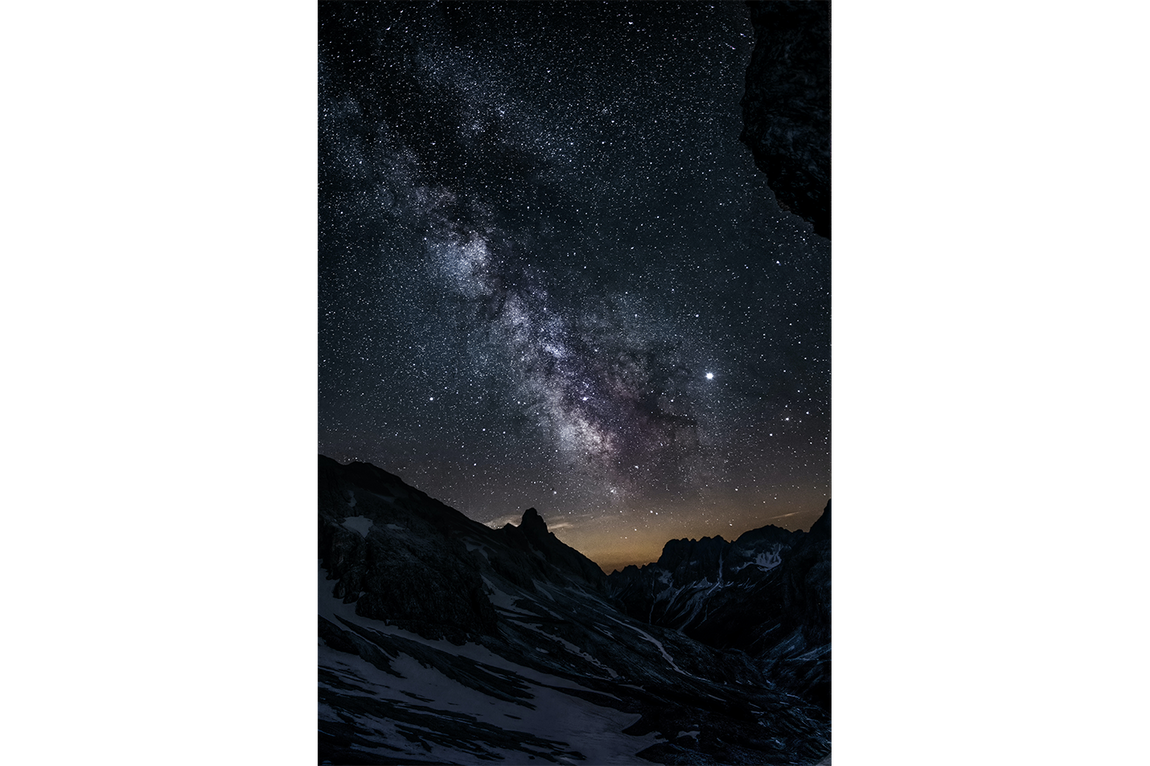 a stunning photograph of the milky way galaxy over a dark, snowy mountain range, abstract, art, kanvas tablo