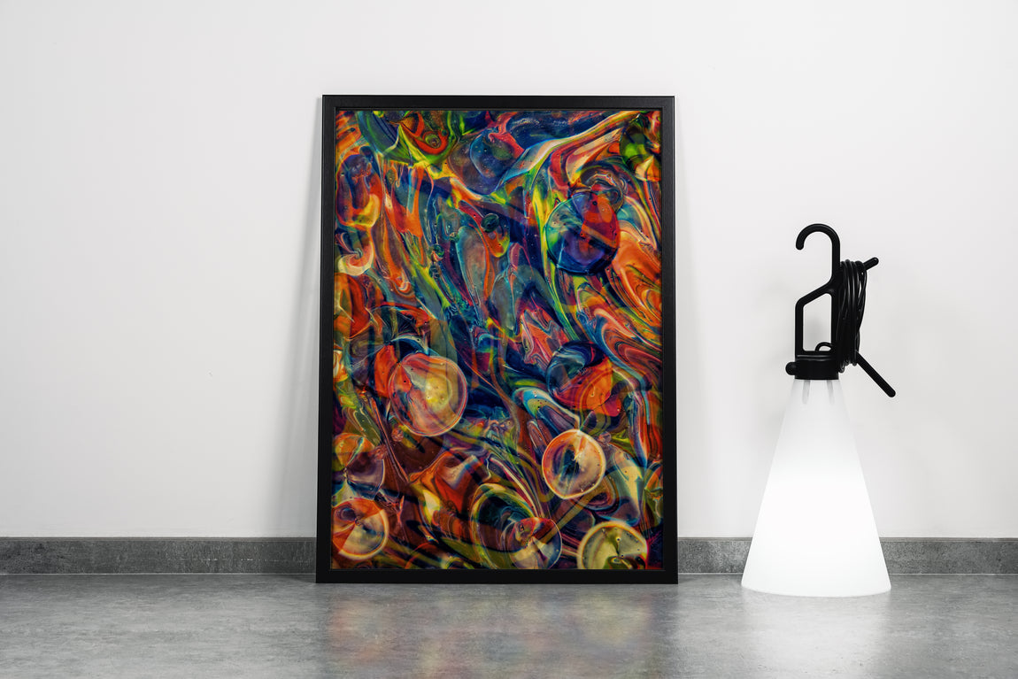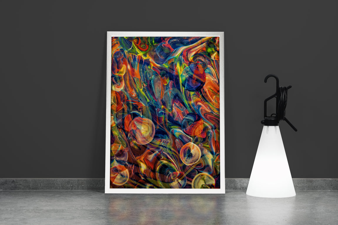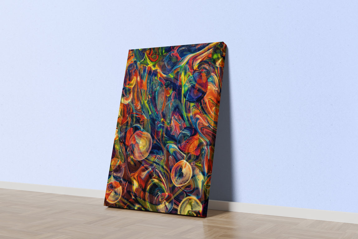 Renklerin enerjisi ve canlılığı, canlı dalgalar ve köpük benzeri şekillerle buluşuyor. Detaylı baskı kalitesi, soyut tasarımın her rengini keskin ve parlak bir şekilde yansıtıyor. Bu eser, mekânlarınıza hareket katarken, özgün ve dikkat çekici bir atmosfer yaratmanıza yardımcı olur. Kaliteli kanvas materyali sayesinde uzun ömürlü ve dayanıklıdır.