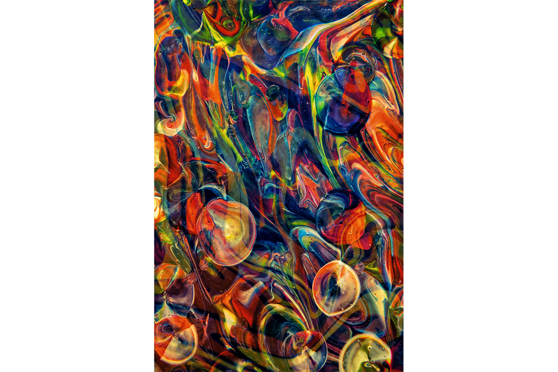 a vibrant and chaotic psychedelic abstract artwork with colorful swirls and bubble-like shapes, abstract, art, kanvas tablo