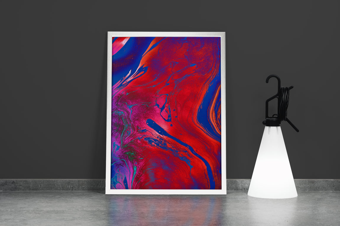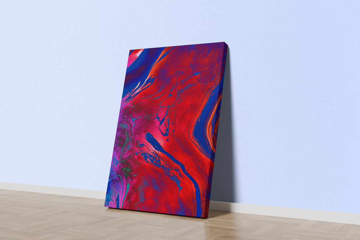 Canlı kırmızı ve mavi tonların akışkan ve dinamik hareketleri, mekânlarınıza enerjik ve çağdaş bir dokunuş katıyor. Baskı kalitesi sayesinde renkler uzun ömürlü ve göz alıcı şekilde korunur. Modern dekorasyonla uyum sağlayan bu eser, yaşam alanlarınızda özgün bir atmosfer yaratır.