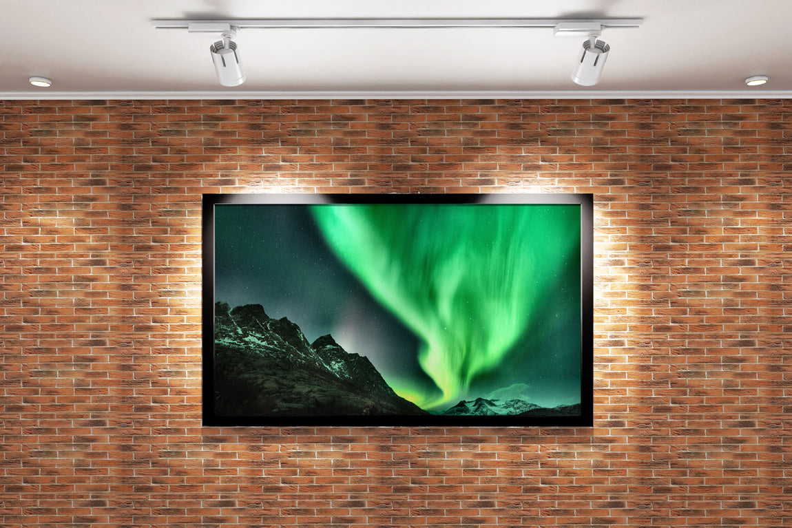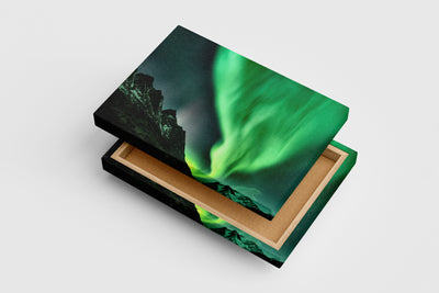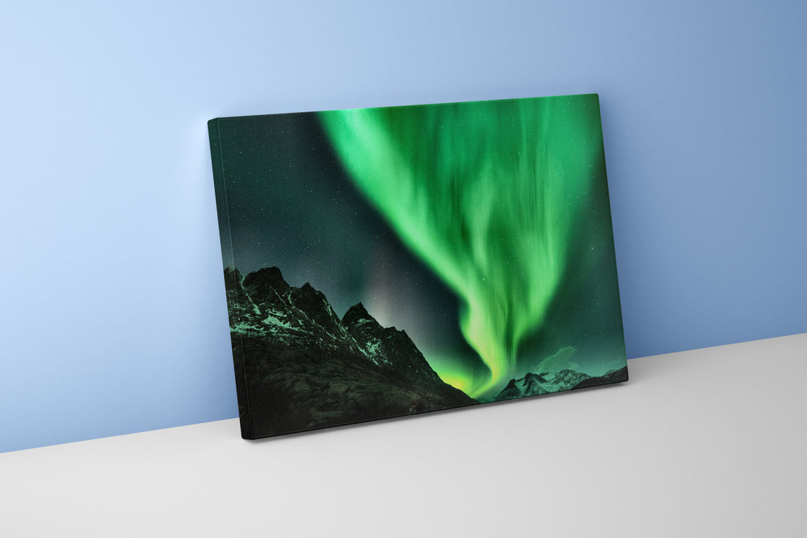 Göz alıcı yeşil kuzey ışıklarının etkileyici dağ zirveleri üzerinde büyüleyici dansını yansıtan yüksek kaliteli baskı, mekanınıza hayat ve derinlik katacak. Dayanıklı kanvas malzemeye uygulanan bu detaylı çalışma, doğal güzellikleri evinizde veya ofisinizde sofistike bir şekilde sergilemenizi sağlar. Canlı renkler ve net ayrıntılar, uzun süre solmadan mekanınıza özel bir atmosfer sunar.