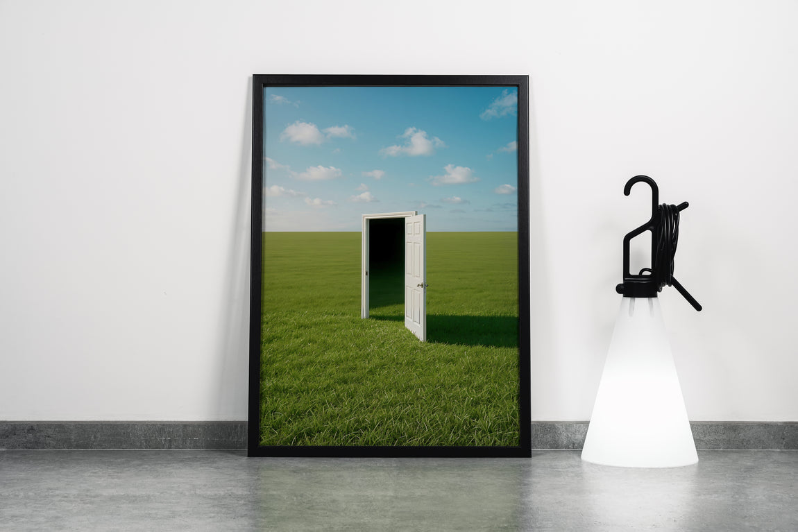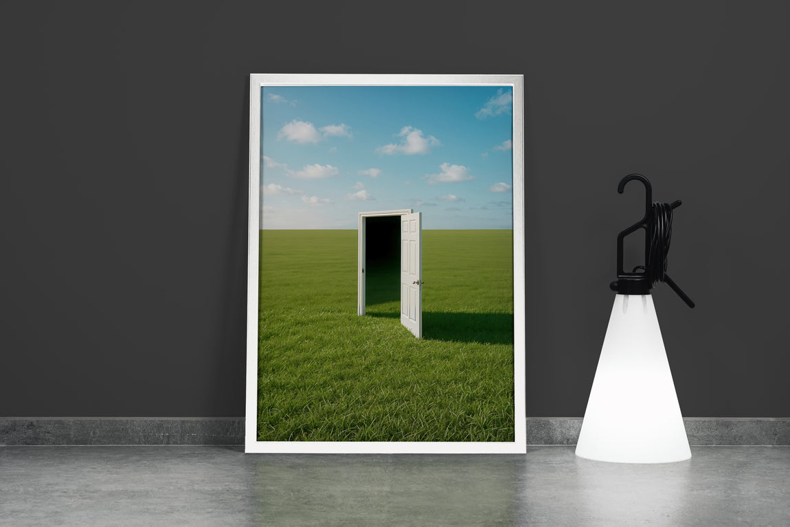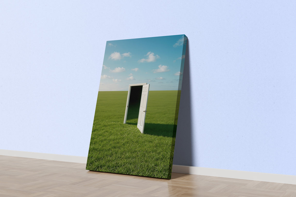 ai creation, a door opening into the void in a windows themed view, ai art, art, kanvas tablo