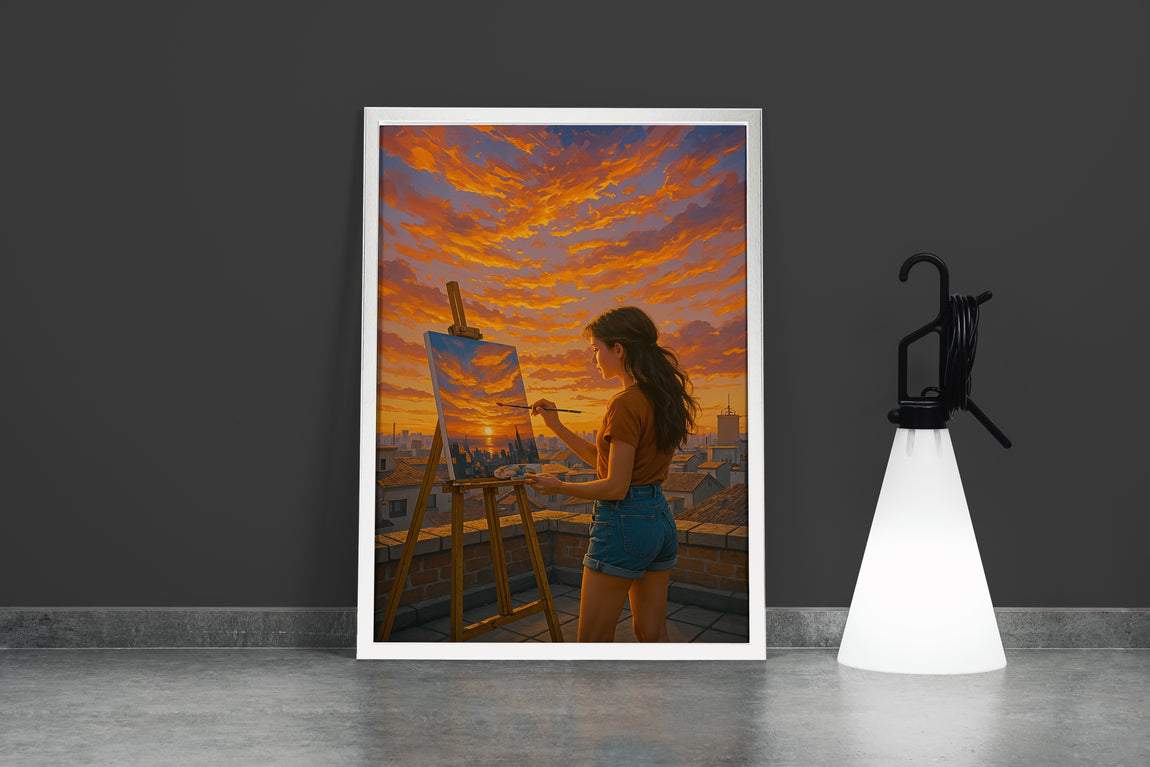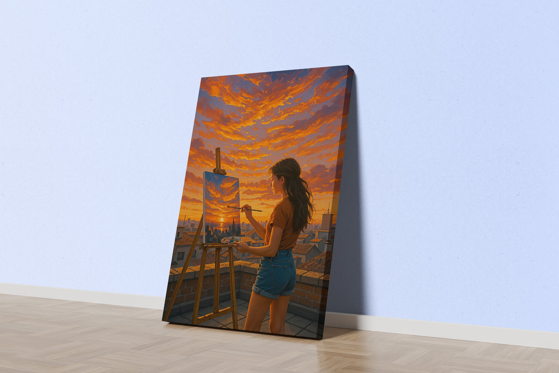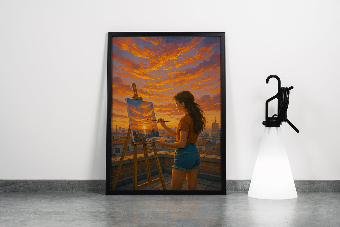 Doğanın büyüsünü evinizde hissetmenizi sağlayan bu baskı, çatı katında ilhamla doğayı resmeden bir kadın sanatçının zarif detaylarını yansıtıyor. Yüksek kaliteli kanvas üzerine yapılan baskı, canlı renkleri ve net çizgileriyle mekanınıza estetik bir dokunuş katarken, dayanıklı yapısıyla uzun ömürlü kullanım sunar. Sanatseverlere özgün ve etkileyici bir atmosfer yaratmak için ideal bir seçim.