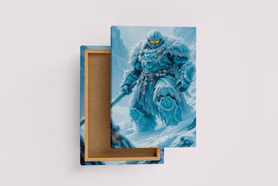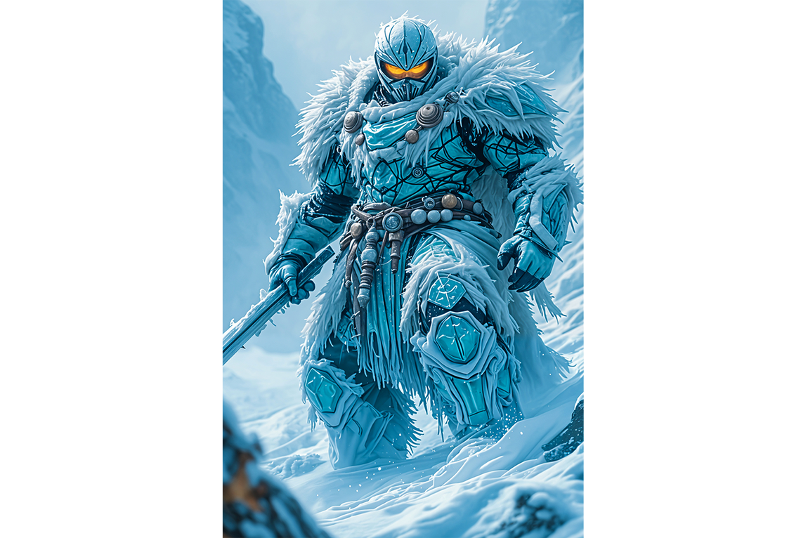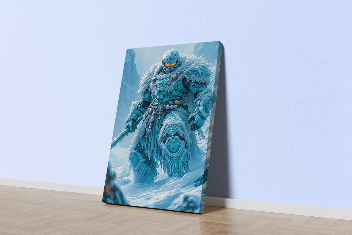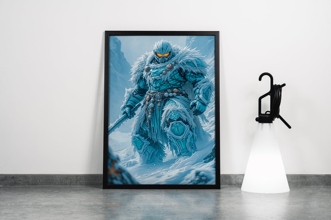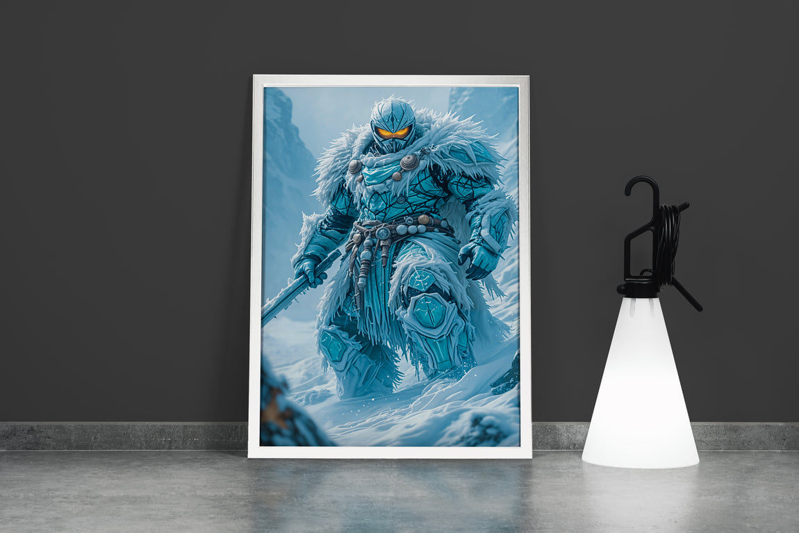 Çatlamış zırhıyla güçlü bir buz savaşçısını detaylandıran bu baskı, turuncu ışıldayan gözleriyle dikkat çekiyor. Yüksek çözünürlüklü baskısı, figürün etkileyici duruşunu ve atmosferini net bir şekilde yansıtıyor. Dekorasyonunuza eşsiz bir hava katarken canlı renkler ve detaylar uzun ömürlü kullanım sağlar. Sanatın dijital teknolojisiyle buluştuğu bu tasarım, mekanınıza güçlü ve etkileyici bir dokunuş getirir.