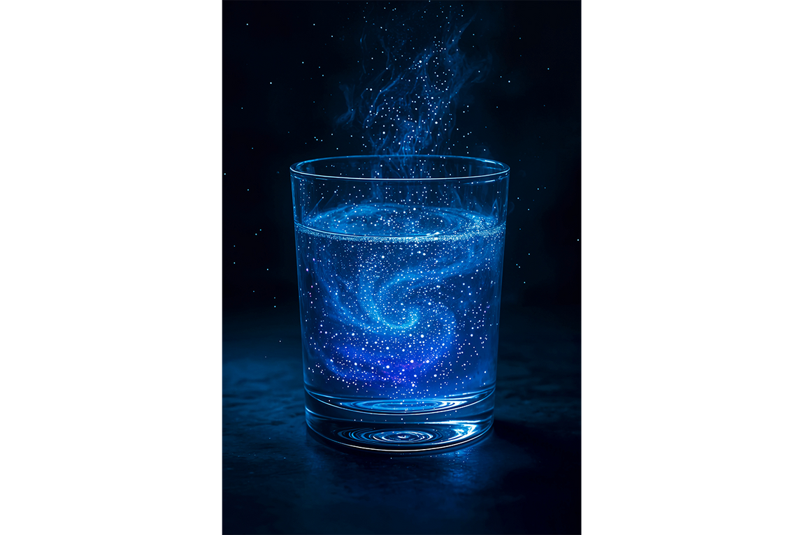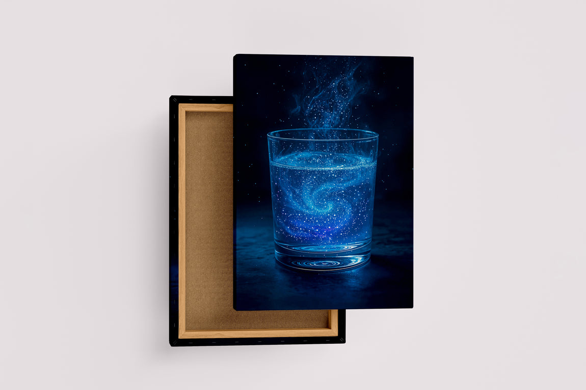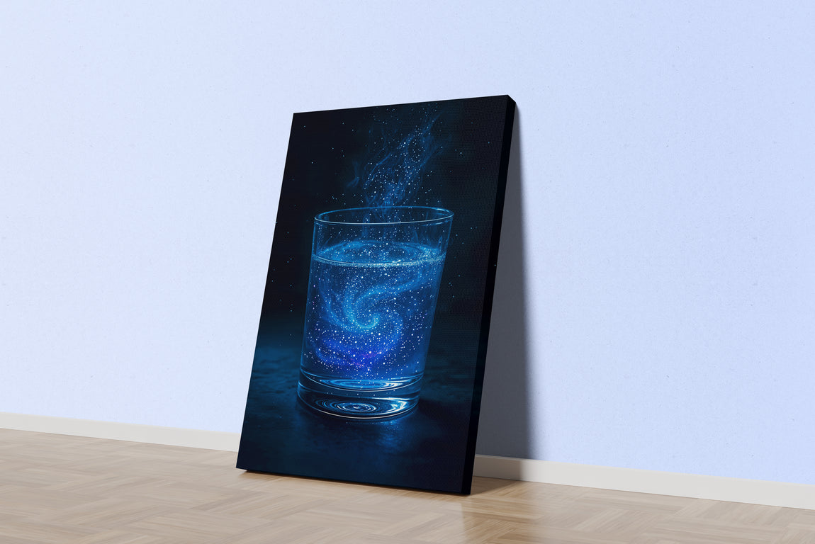 ai creation, a glass full of star shaped neon drops, ai art, art, kanvas tablo