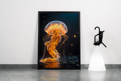 ai creation, a jellyfish engulfed in flames, ai art, art, kanvas tablo