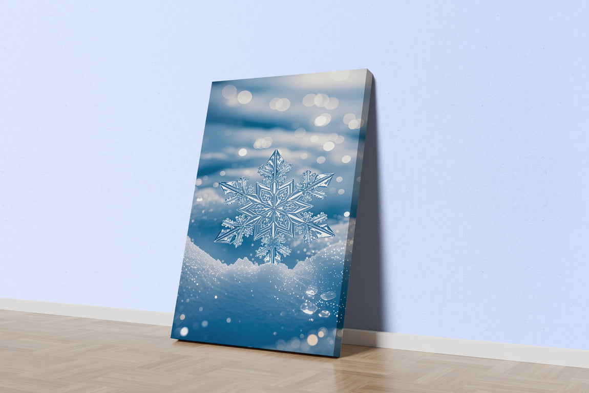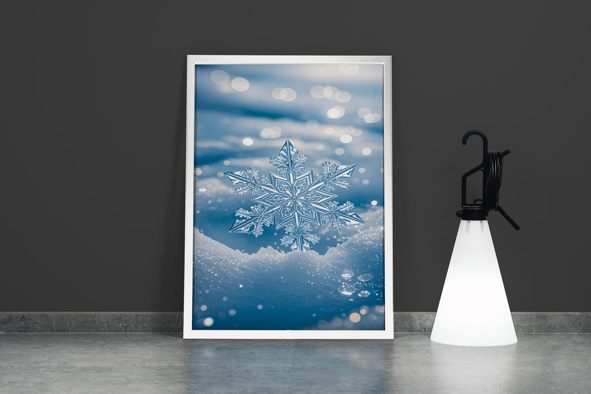 ai creation, a large snow crystal falling on the snow, frozen themed, ai art, art, kanvas tablo