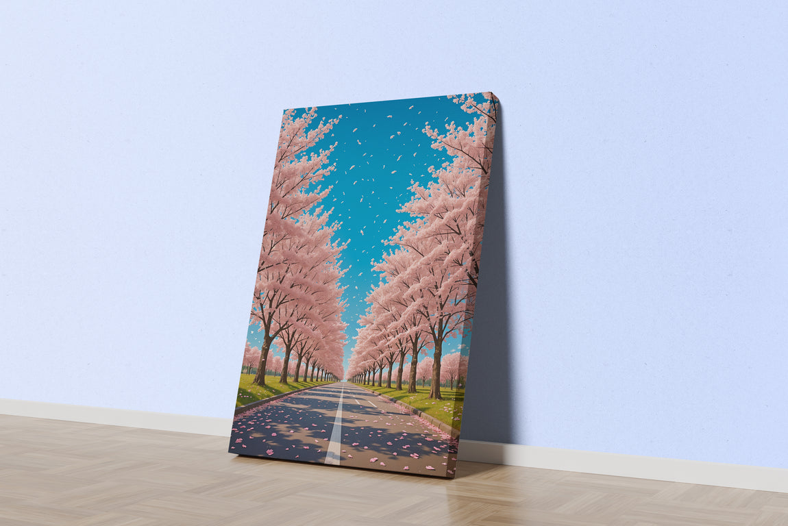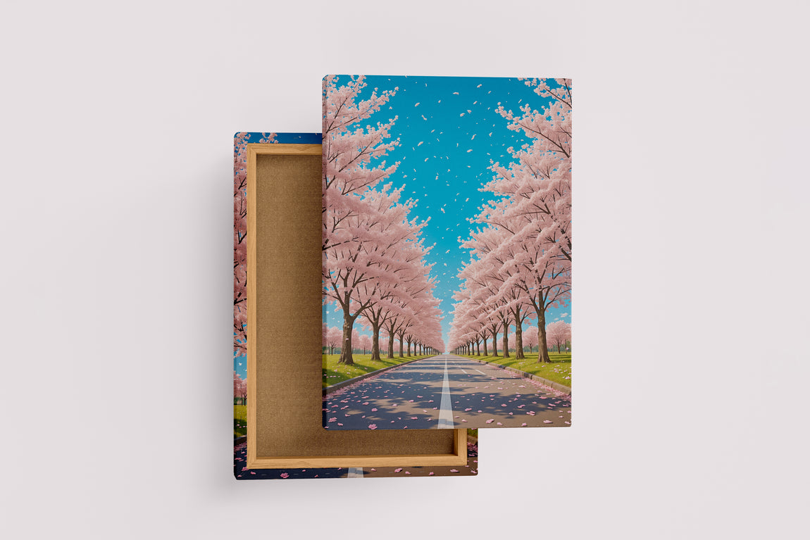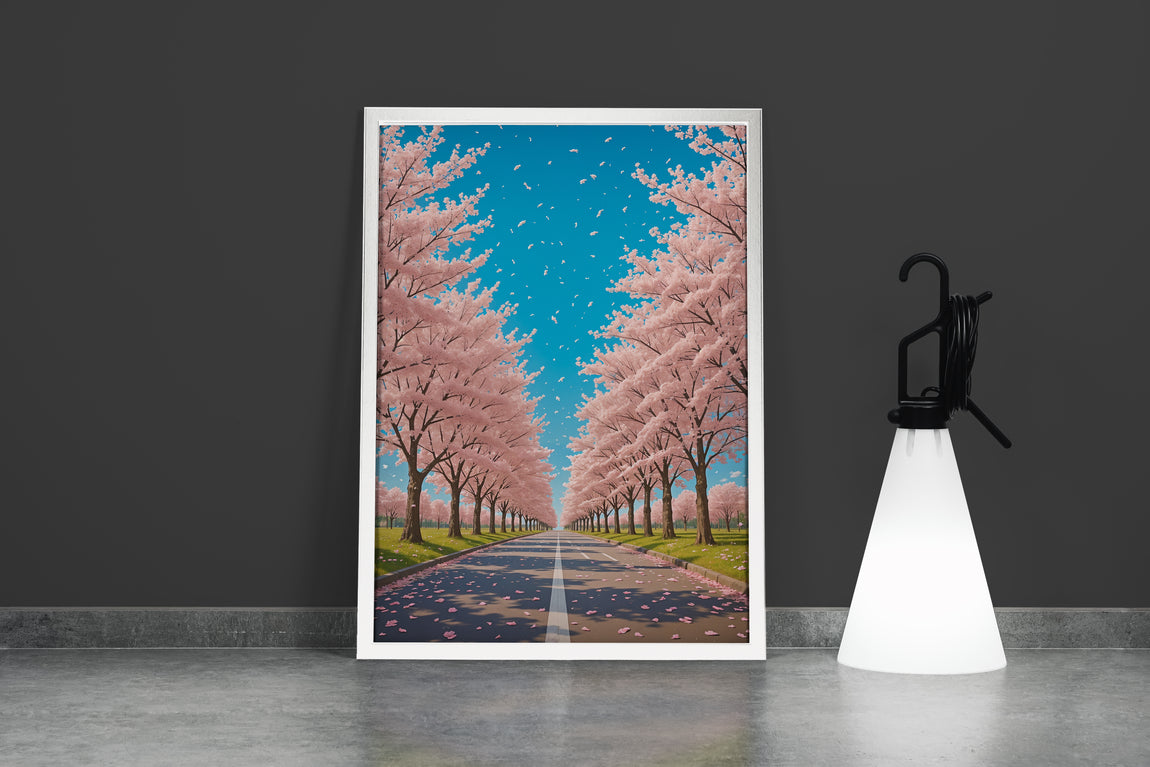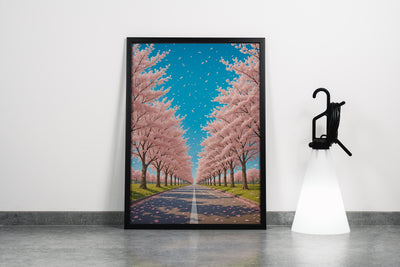 Baskı yüzeyinde yumuşak pembe ağaçlarla süslenmiş sakin bir yolun zarif detayları öne çıkıyor. Yüksek kalite baskı teknolojisi sayesinde renkler canlı ve uzun ömürlü, mekanınıza sofistike ve huzurlu bir atmosfer katıyor. Estetik dokunuşlarıyla yaşam alanlarınızı güzelleştirirken modern sanat etkisini de taşır.