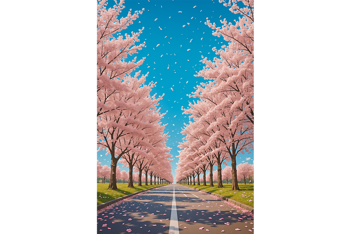 ai creation, a road decorated with soft pink trees, ai art, art, kanvas tablo