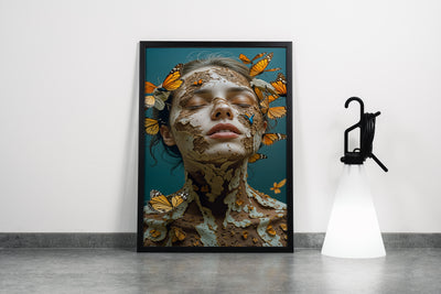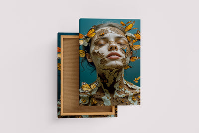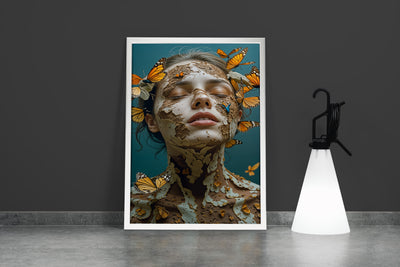 İnce detaylarla dikkat çeken bu baskı, çatlayan teninden çıkan monark kelebekleriyle sıra dışı bir görsel deneyim sunuyor. Yüksek kaliteli malzeme ve teknolojisi sayesinde renkler uzun süre canlı kalır, mekânınıza estetik ve etkileyici bir dokunuş sağlar. Sanatın özgün ifadesini evinize taşıyan bu parça, her ortamda fark yaratır.