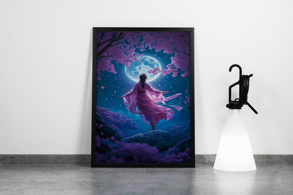 İnce detaylarla işlenmiş bu baskıda, pembe kimono giymiş zarif bir kadın, dolunay ışığı ve kiraz çiçeklerinin büyüleyici atmosferiyle buluşuyor. Göz alıcı renkler ve şık kompozisyon, mekanınıza estetik bir dokunuş katarken ruhunuzu dinlendirir. Dayanıklı malzemesi sayesinde uzun ömürlü kullanım sağlar ve canlı renklerini korur. Her ortamda sanatsal bir hava yaratmak isteyenler için ideal bir seçenek.