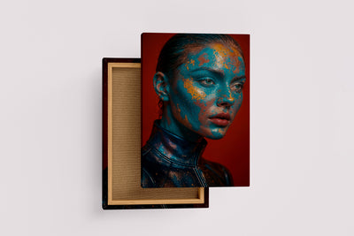 Turkuaz ve altın tonlarının zarif dokunuşlarıyla hayat bulan kadın yüzü detayları, modern sanatın özgün yorumunu yansıtıyor. Yüksek kaliteli baskı teknolojisi sayesinde her renk canlı ve net bir şekilde öne çıkıyor, mekanınıza şıklık katıyor. Sanatseverler için özel olarak tasarlanmış bu eser, duvarlarınızı estetik ve sofistike bir atmosferle dolduracak.