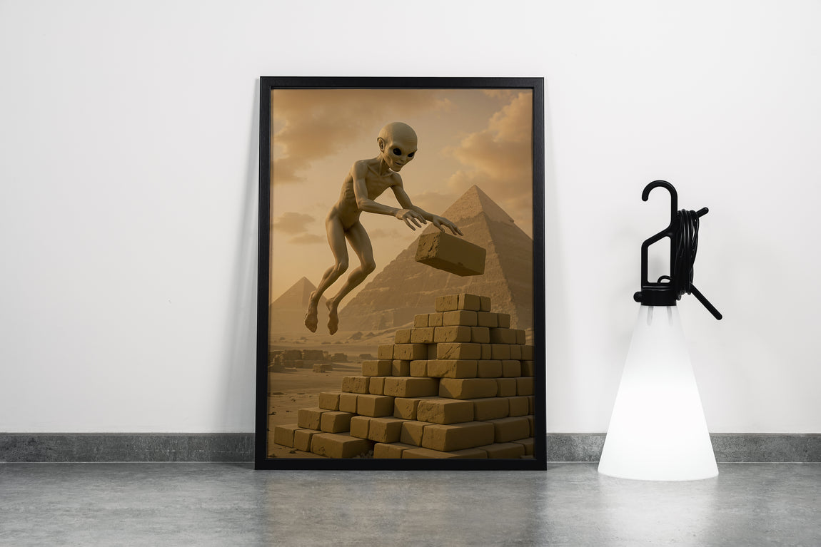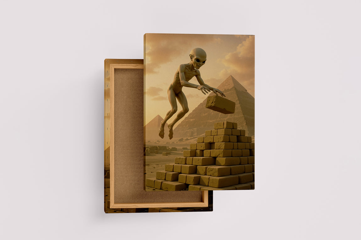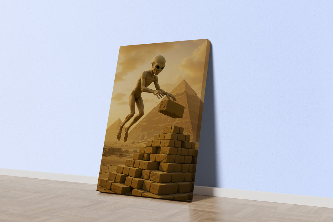 Mısır piramitlerinin yapım sürecini farklı bir bakış açısıyla yorumlayan bu baskı, uzaylıların mimari ustalığını gözler önüne seriyor. Canlı renkler ve detaylı çizimlerle zenginleştirilen tasarım, ev veya ofis dekorasyonunda ilgi çekici bir atmosfer yaratır. Kaliteli kanvas üzerine yapılan baskı, uzun ömürlü ve dayanıklı bir görsel sunar. Sanatseverler için sıra dışı ve dikkat çekici bir seçim olarak öne çıkar.