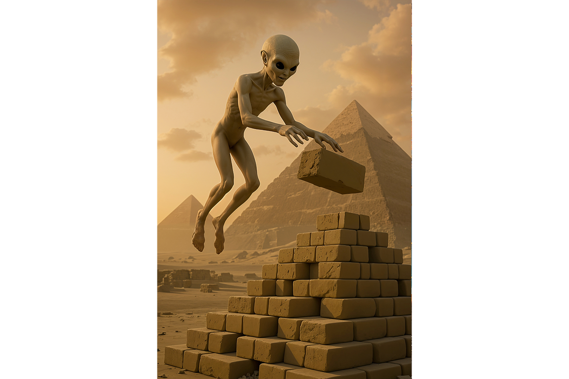ai creation, aliens building the egyptian pyramids, ai art, art, kanvas tablo