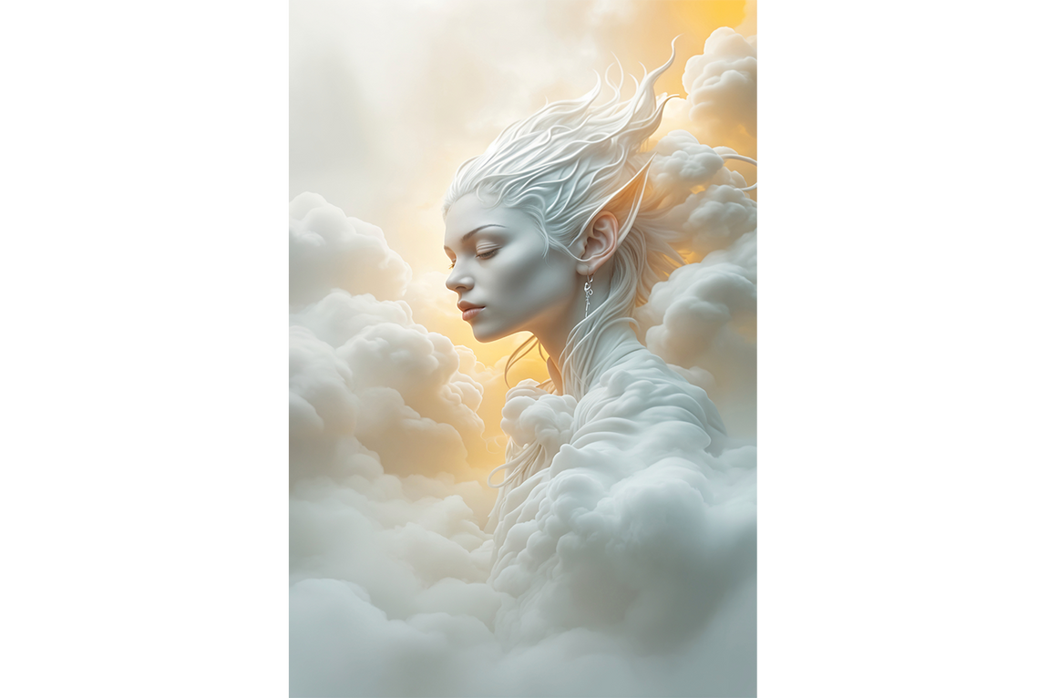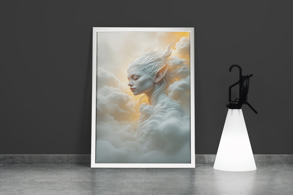 Bulutlardan oluşan, sivri kulaklara sahip eterik bir hava ruhunun detaylarıyla tasarlanan bu baskı, mekanlarınıza hafiflik ve asaleti taşıyor. Yüksek kaliteli malzeme üzerine yapılmış baskı, canlı renkleri ve ince işçilikle atmosferinize büyülü bir dokunuş kazandırır. Modern sanatın dijital yorumunu evinizde hissetmek isteyenler için ideal bir seçim.