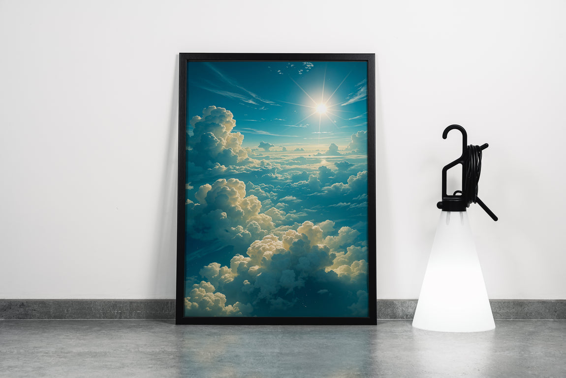 Güneşin bulutların üzerinde doğuşunu betimleyen bu baskı, mekanınıza sıcak ve huzurlu bir atmosfer katmak için tasarlandı. Detaylarıyla etkileyici olan baskı, yüksek kaliteli malzeme kullanımıyla uzun ömürlüdür ve renklerin canlılığını korur. Evinizin veya ofisinizin dekorasyonunda göz alıcı bir dokunuş sağlar.