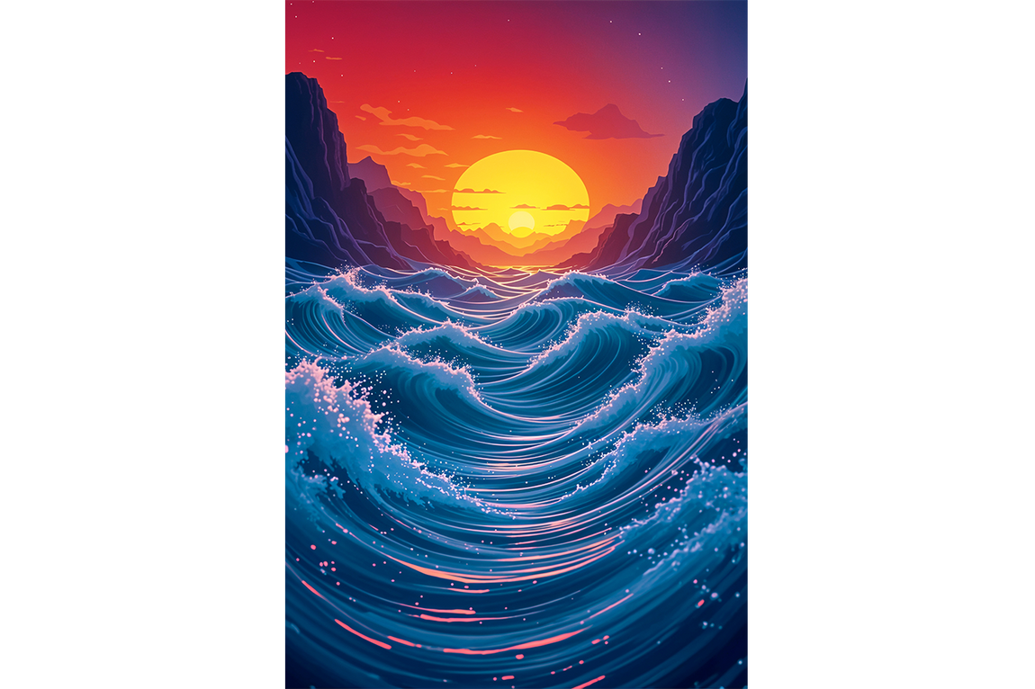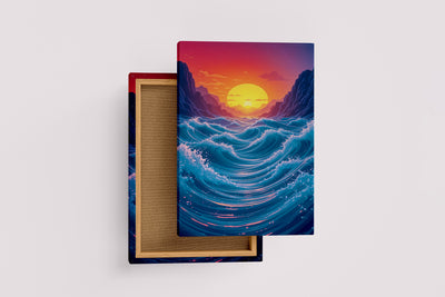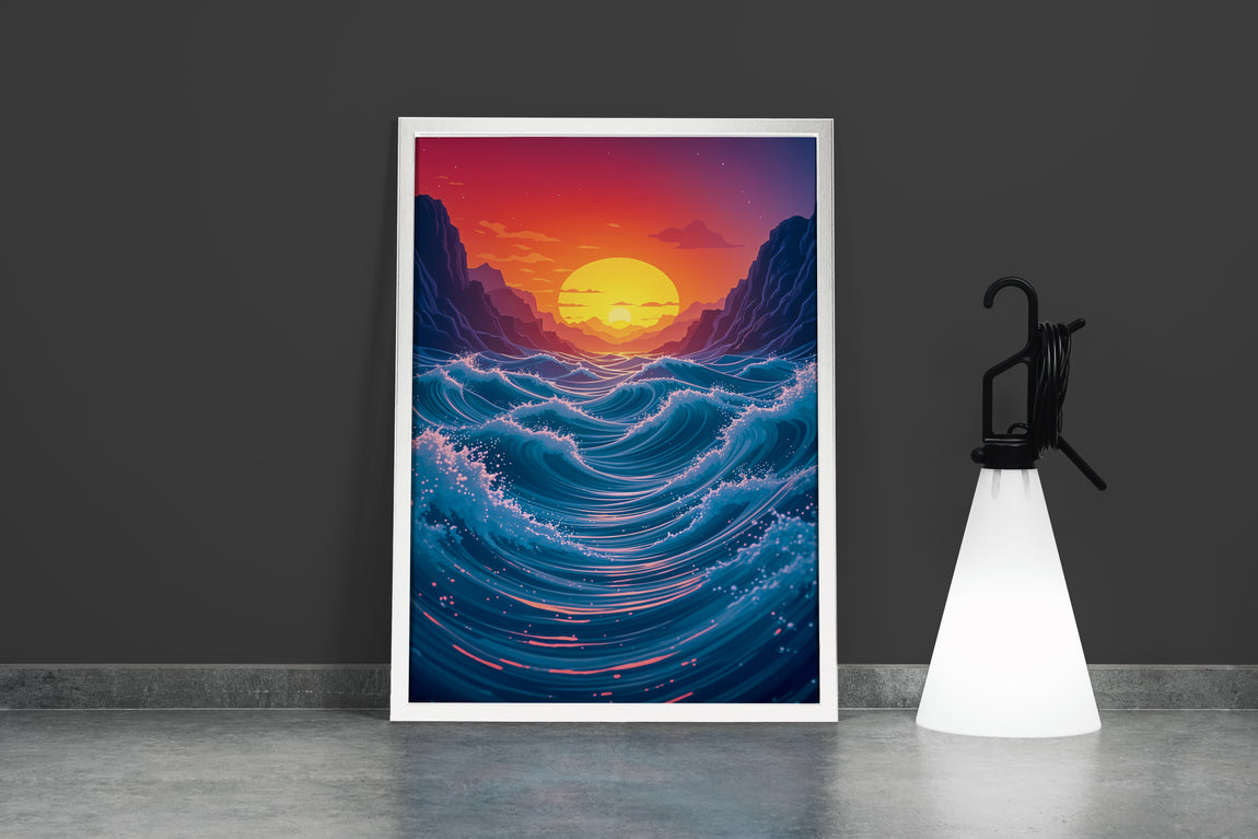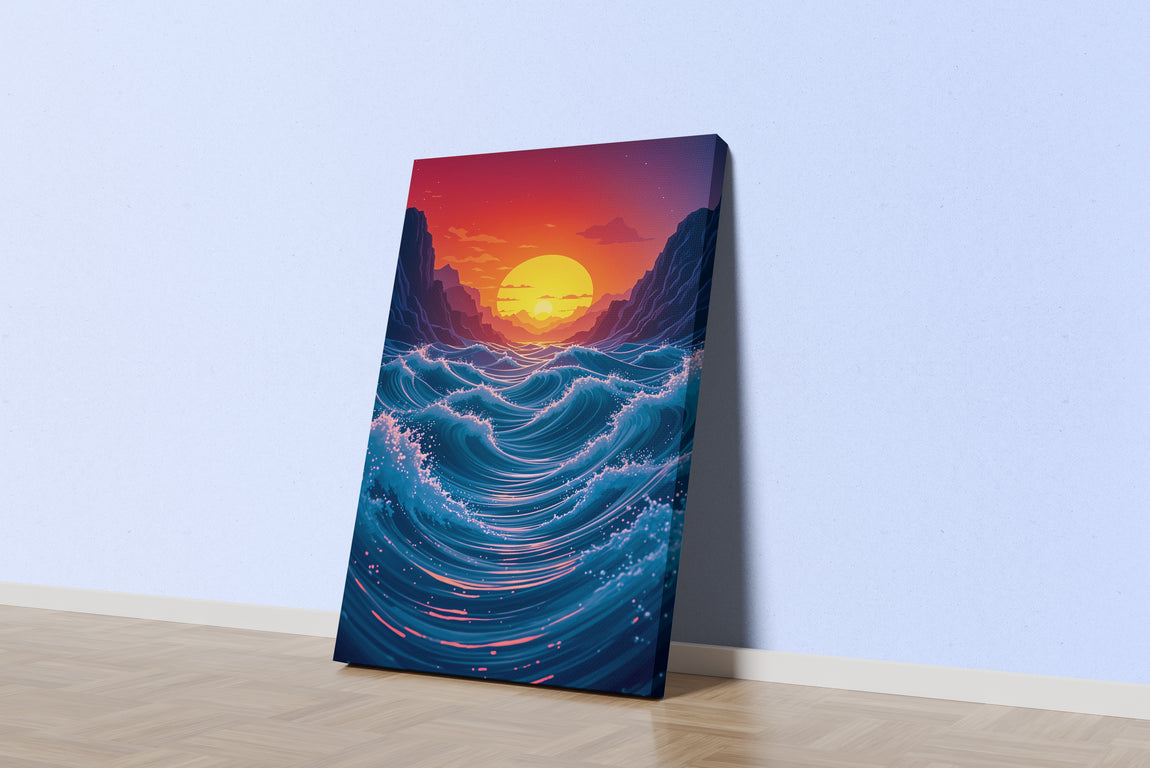 ai creation, as the sun sets among giant waves, ai art, art, kanvas tablo