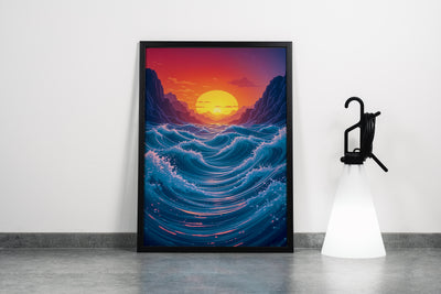 Güneşin dev dalgalar arasında batışını tasvir eden bu baskı, mekânınıza büyüleyici bir atmosfer katıyor. Canlı renkleri ve detaylarıyla dikkat çeken görsel, duvarlarınızı sıradanlıktan uzaklaştırarak derinlik ve hareket kazandırır. Dayanıklı malzemesi sayesinde uzun yıllar canlılığını korur ve kolayca asılabilir. Sanatla dolu bir ortam yaratmak isteyenler için ideal bir seçenektir.