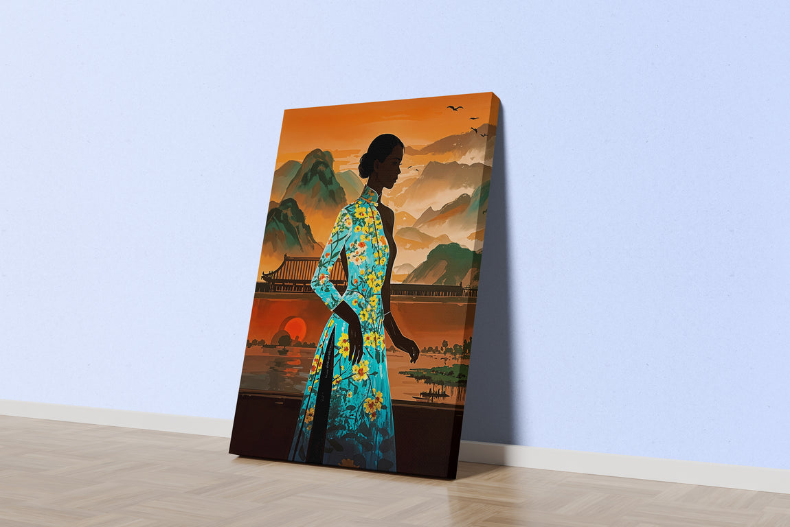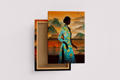 Gün batımının büyüleyici renkleriyle harmanlanmış Asya çiçekleri ve kadın figürlerinin detaylı baskısı, yaşam alanlarınıza zarif ve etkileyici bir dokunuş katıyor. Canlı renk kalitesi ve ince işçilik, duvarlarınıza estetik bir hava getirirken ortamınıza sıcaklık ve derinlik kazandırır. Kaliteli malzeme kullanılarak hazırlanan baskı, uzun ömürlü ve dayanıklıdır, dekorasyonunuza şık ve modern bir görünüm sağlar.