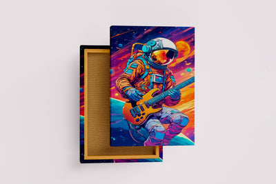 Uzayın derinliklerinde, turuncu tonların sıcaklığıyla vurgu yapılmış, astronotun gitar çaldığı özgün bir baskı sunuluyor. Yüksek kaliteli kanvas üzerine işlenen bu baskı, detayları ve renkleriyle yaşam alanlarınıza sanatsal bir atmosfer katacak. Hem modern hem de özgün bir dokunuş arayanlar için ideal bir seçim.