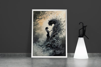 Karanlığın derinliklerinde güçlü bir siyah jaguarın vahşi bir şekilde kükrediği bu baskı, yanında gizemli siyah giysili bir kadını barındırıyor. Yapay zeka sanatıyla oluşturulan bu detaylı tasarım, odanıza sıradışı bir atmosfer katacak. Yüksek kaliteli kanvas üzerine yapılan baskı, canlı renkler ve net detaylarla uzun ömürlü bir görsel deneyim sunar. Sanat tutkunları için dikkat çekici ve özgün bir seçenek.
