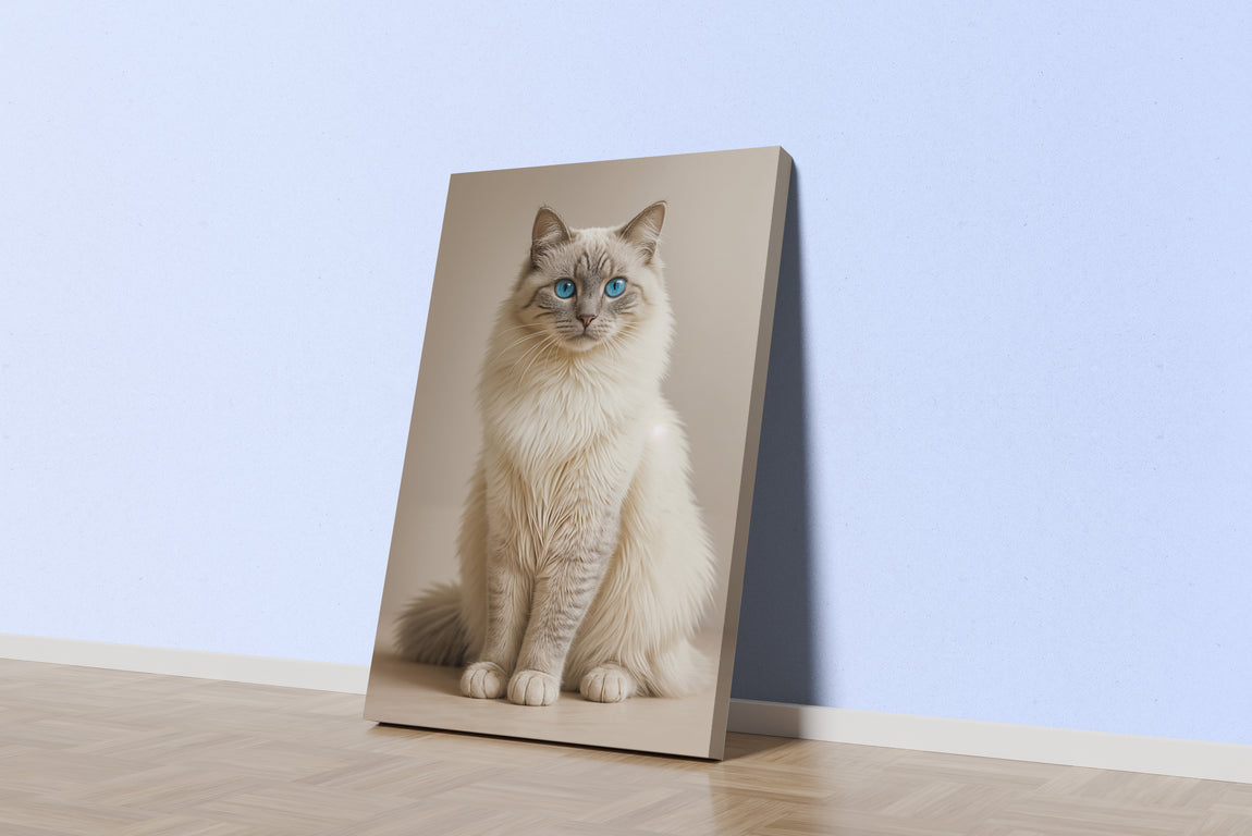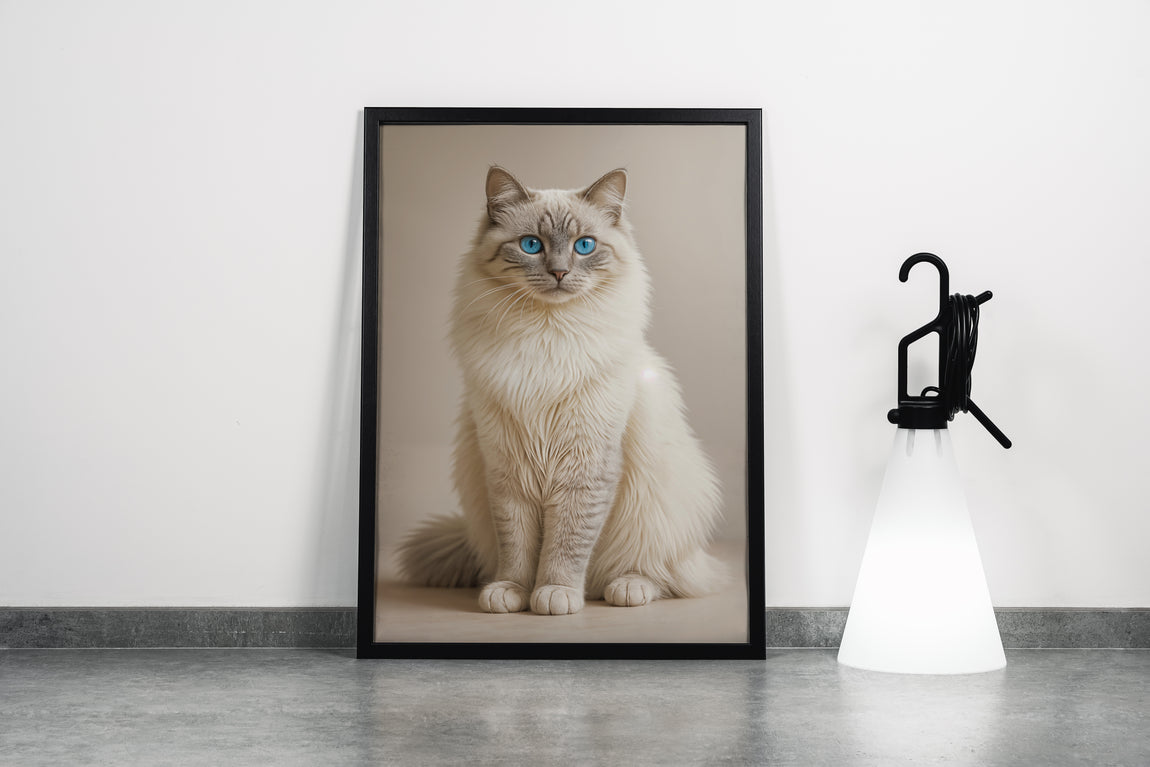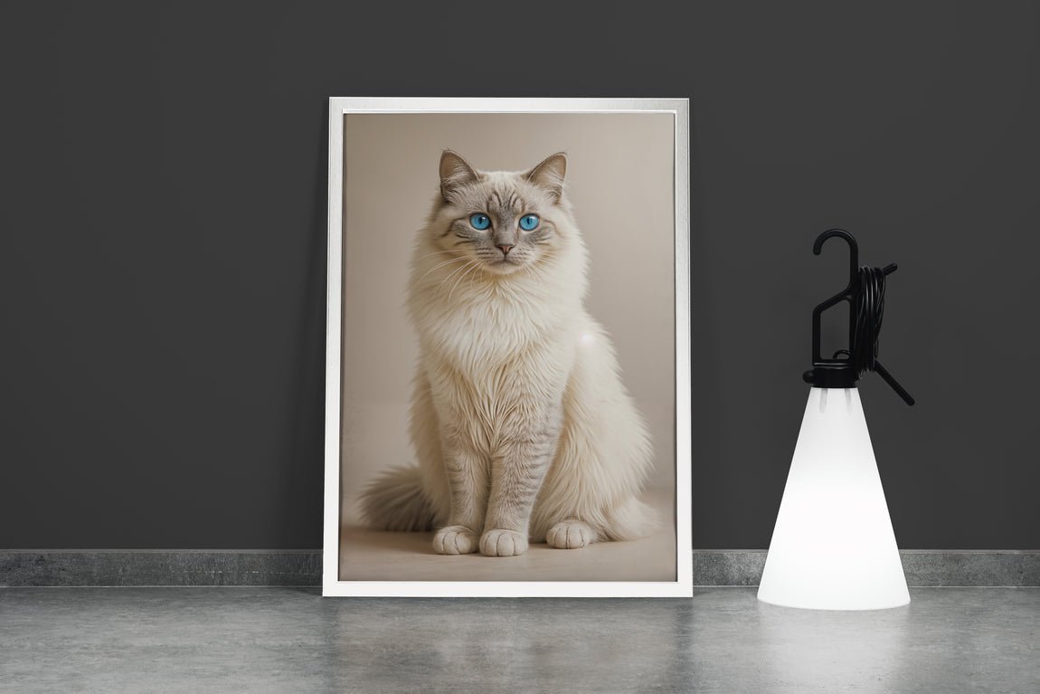 Mavi gözlü sakin bir kedinin zarif ve detaylı baskısı, yaşam alanlarınıza huzur ve şıklık katıyor. Yüksek kaliteli malzemelerle yapılan bu baskı, uzun ömürlü renk canlılığı sağlar ve dekorasyonunuza sofistike bir dokunuş sunar. Ev veya ofis ortamlarınıza özgün bir atmosfer kazandırmak için ideal bir seçim.