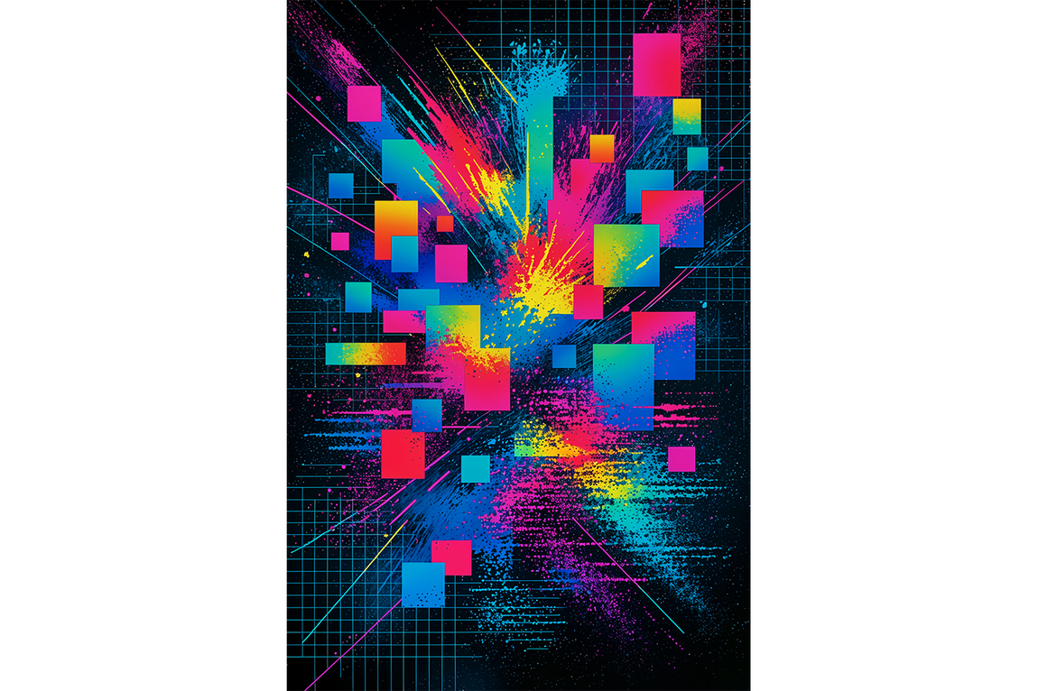 ai creation, colorful cube pieces scattered model 1, ai art, art, kanvas tablo