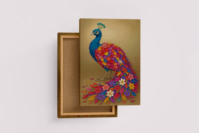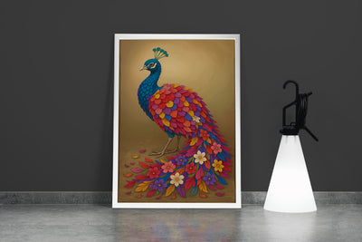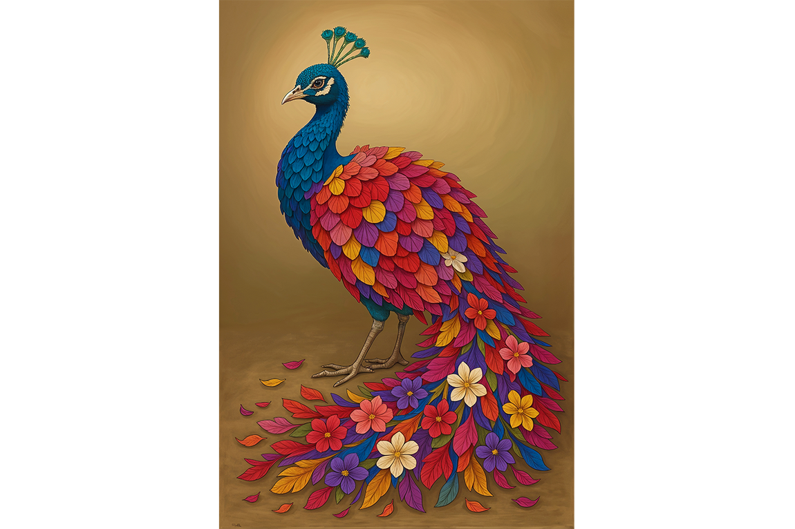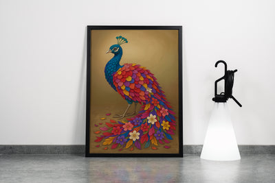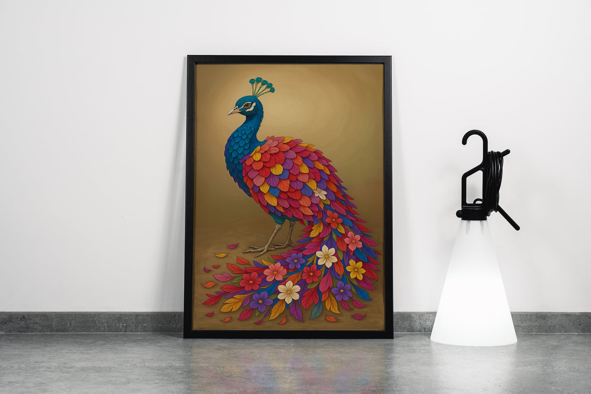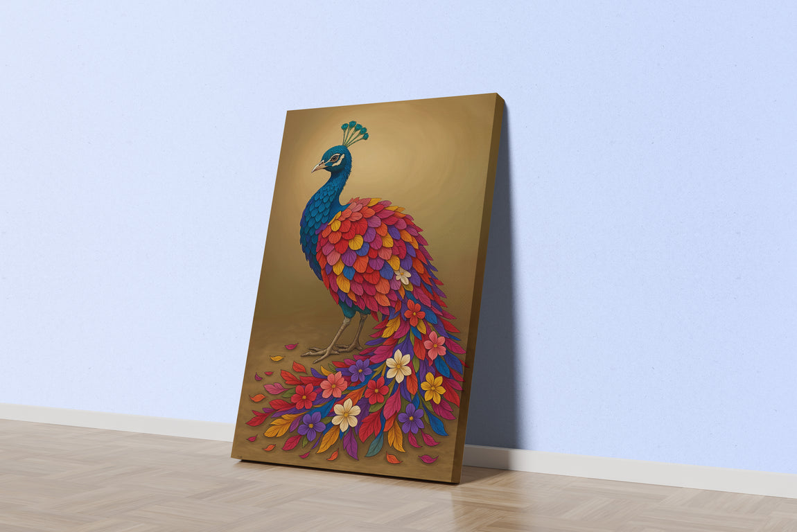 ai creation, colorful peacock adorned with flower motifs, ai art, art, kanvas tablo