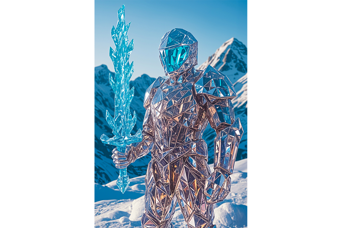 ai creation, crystal shining warrior holding a crystal sword, frozen theme, ai art, art, kanvas tablo