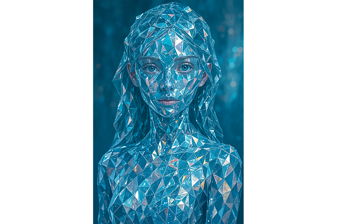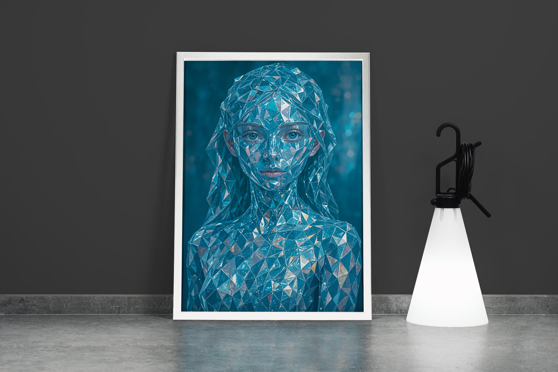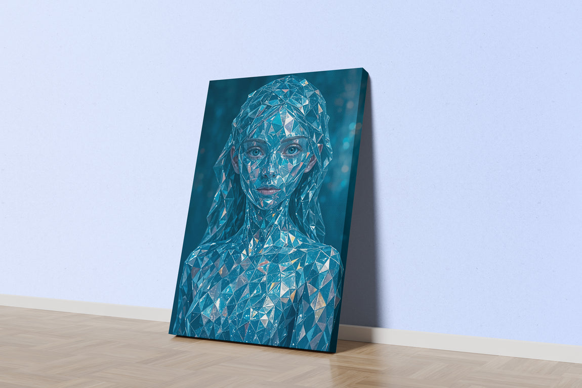 ai creation, crystal woman portrait, blue shards, geometric, reflective, ethereal glow, ai art, art, kanvas tablo