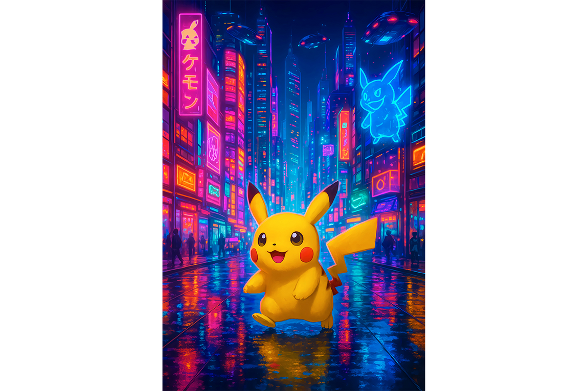 ai creation, Cyberpunk Pikachu, kid, ai art, art, kanvas tablo